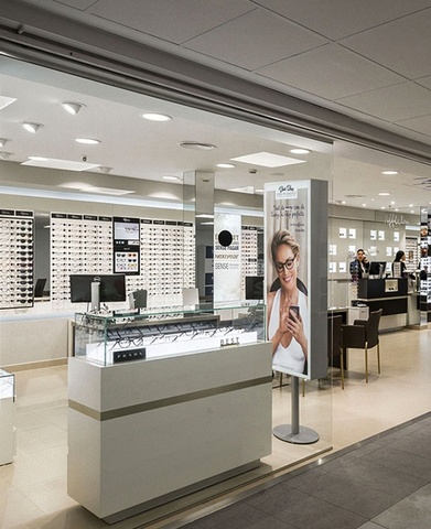 Gözlükçü mağazası iç mobilya tasarımı için özel vitrinin armatürleri